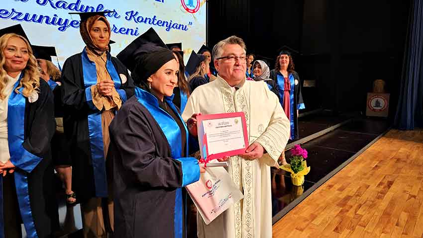 Özölçer, konuşmasının ardından mezun olan öğrencilere diplomalarını takdim etti. Yemin ettirilmesinin ardından keplerini havaya atan 34 yaş üstü öğrenciler mezun olmanın coşkusunu yaşadı. Mezunlara yakınları da eşlik ederek sevinçlerine ortak oldu.