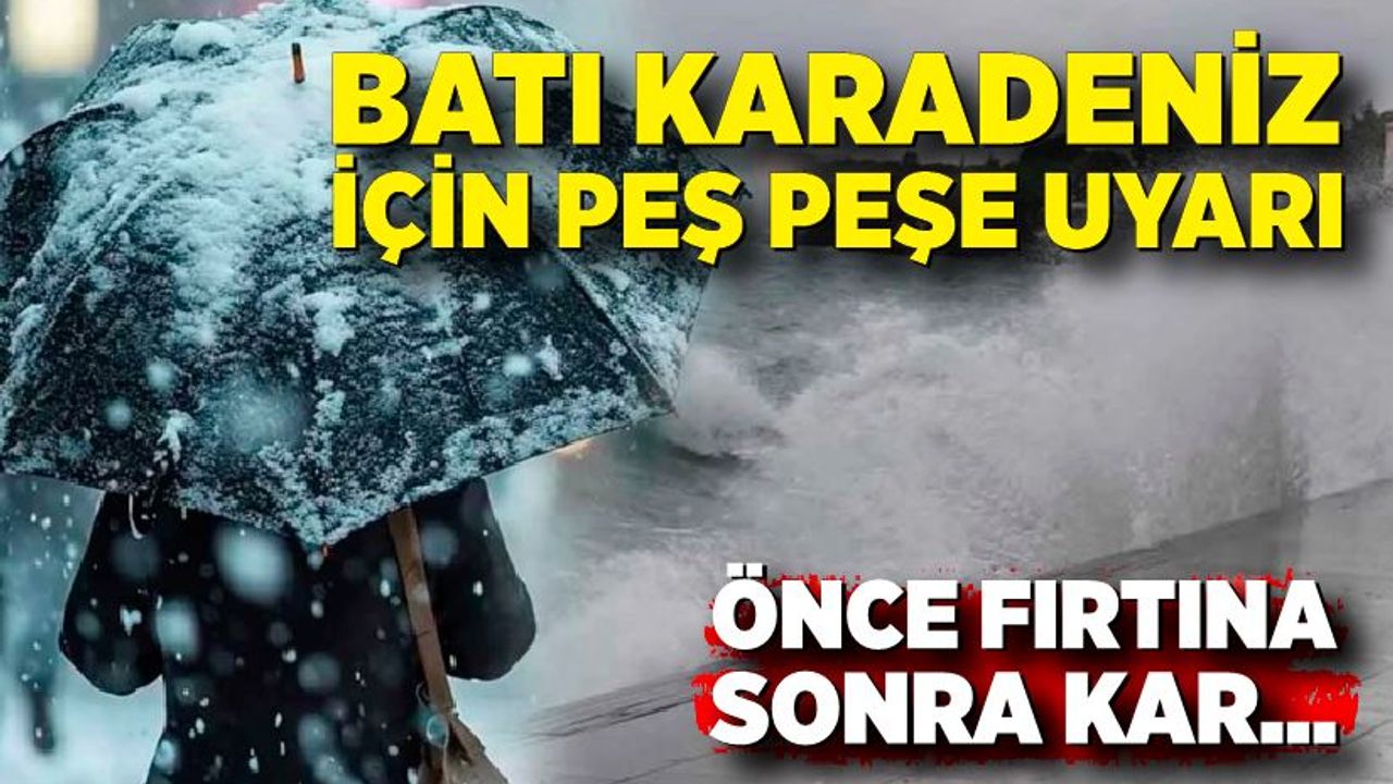 Meteoroloji Genel Müdürlüğü, Batı Karadeniz bölgesinde etkili olması beklenen fırtına ile birlikte, ardından gelecek soğuk ve yağışlı hava dalgasına karşı vatandaşları uyardı.
