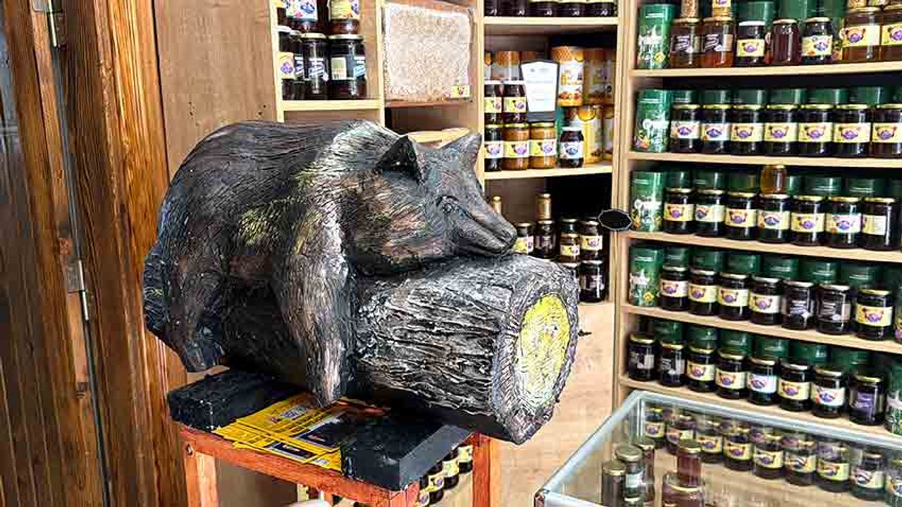 Dükkanındaki ahşap dekora ilişkin ise Söğüt, "Ayının baygın halde köylüler tarafından yakalanıp pikap arkasına konulduğu görüntüler büyük ilgi görmüştü. Bize hatıra olması açısından kütükten böyle bir çalışma yaptık. Önüne de arı kovanı koyduk, üzerine de ayı çalışması yaptık. Balkızımız baldan fazla yedi ve bayıldı. Bizde kovana yatar şekilde bir maketini yaptık. Fuar alanlarına katıldığımızda çok ilgi görüyor. Özellikle Düzce bölgesinde insanlar beğeniyor. İlgili de oluyor" diye konuştu.