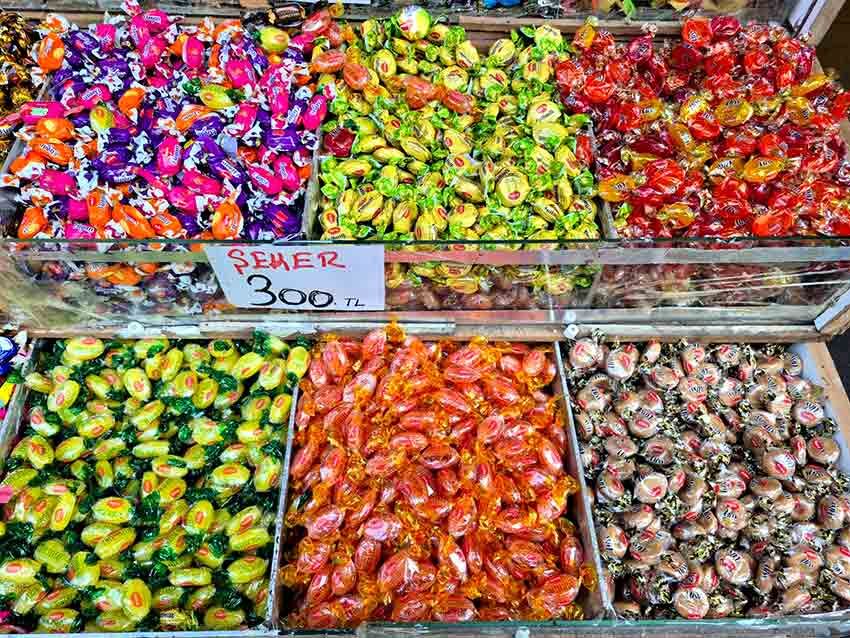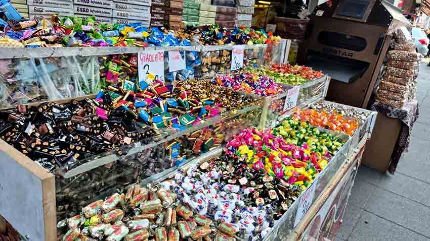 Bayram ziyaretlerinin vazgeçilmez ikramları arasında yer alan şeker ve çikolatalar, bu yıl da farklı çeşitleriyle satışa sunuldu. Kentte bazı tezgâhlarda şeker ve çikolatanın kilogram fiyatının yaklaşık 300 lira olduğu görüldü.