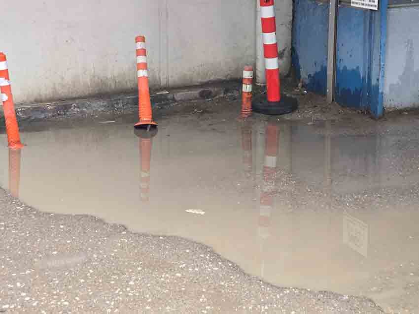 Yağmur sularının tahliye edilememesi sonucu yolda oluşan birikinti, adeta göleti andırdı. Özellikle araç giriş-çıkışlarının yoğun olduğu noktada yaşanan durum, sürücüler için zor anlara neden oldu.