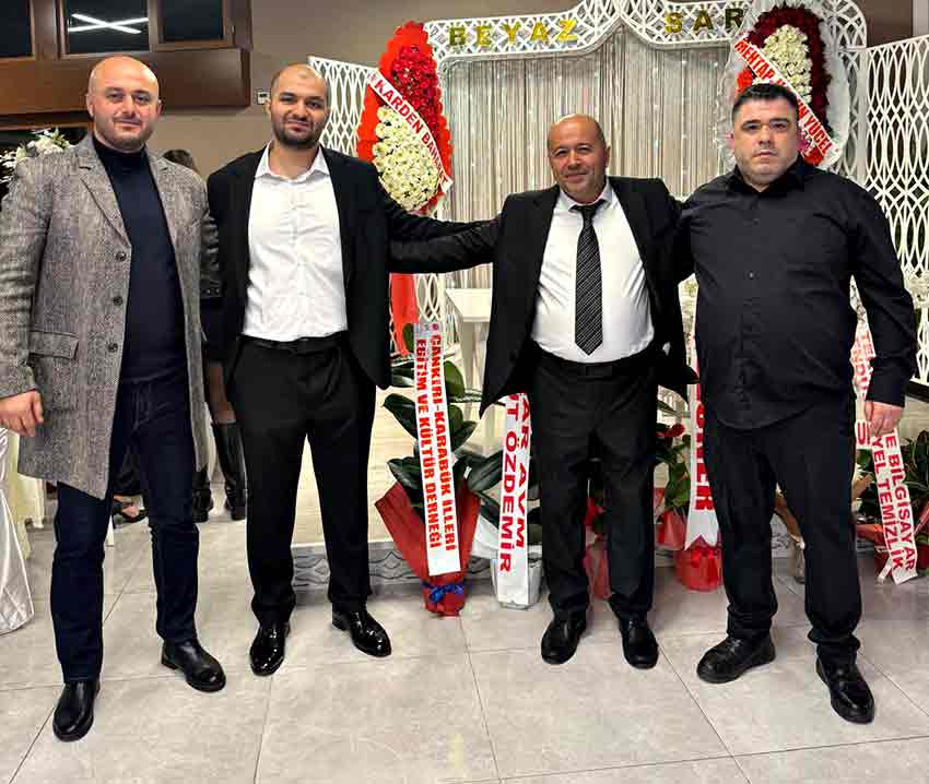 Düğüne katılan Çankırılılar Derneği Başkanı Öner Uysal ve dernek yönetim kurulu üyeleri de Betül ve Yiğit’i yalnız bırakmadı. Uysal, genç çifti kutlayarak ömür boyu mutluluk temennisinde bulundu, aileleri tebrik etti.
