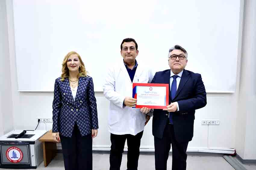 Yapılan sunumun ardından Tıp Fakültesi 2025-2026 Akademik Yılı Akademik Kurul Toplantısı, BEUN Rektörü Prof. Dr. İsmail Hakkı Özölçer’in ulusal ve uluslararası indekslerde yayımlanan bilimsel çalışmalarıyla öne çıkan akademisyenlere teşekkür belgelerini takdim etmesiyle devam etti.