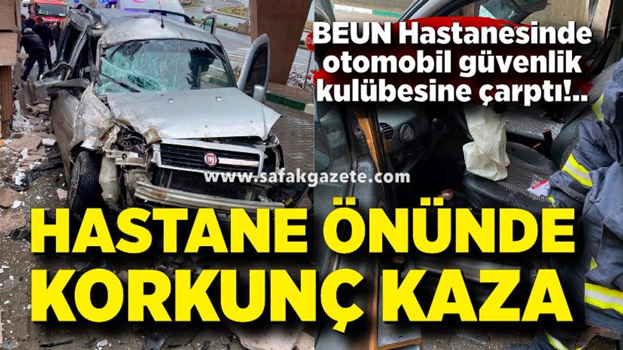 Edinilen bilgilere göre, seyir halindeki otomobil sürücüsünün direksiyon hâkimiyetini kaybetmesi sonucu araç kontrolden çıkarak hastane önünde bulunan güvenlik kulübesine çarptı. Kazada otomobilde bulunan 2 kişi yaralandı.
