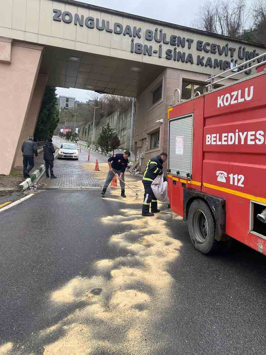 İhbar üzerine olay yerine polis, sağlık ekipleri ve Kozlu Belediyesi itfaiye ekipleri sevk edildi. Araç içerisinde sıkışan yaralılar, itfaiye ekiplerinin çalışmasıyla bulundukları yerden çıkarıldı. Sağlık ekiplerinin olay yerindeki ilk müdahalesinin ardından yaralılar ambulansla hastaneye kaldırıldı.