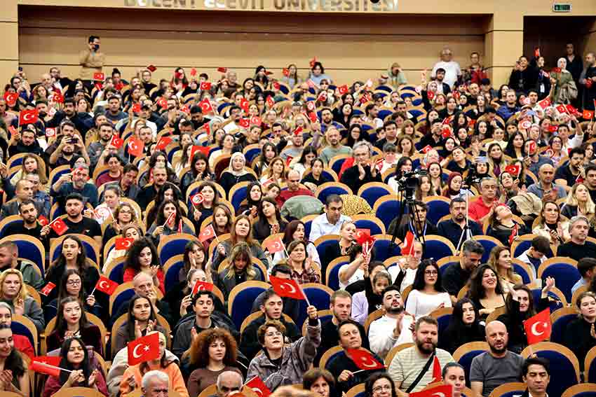 BEUN Devlet Konservatuvarı akademisyenleri ve öğrencileri tarafından hazırlanan konser programında, Cumhuriyet coşkusunu anlatan eserler seslendirildi. Prof. Dr. İlker Kömürcü’nün “100. Yıl Marşı” izleyicilerden büyük alkış aldı. Türk bayraklarıyla donatılan salonda, izleyiciler şarkılara eşlik ederek Cumhuriyet’in 102. yılını coşkuyla kutladı.