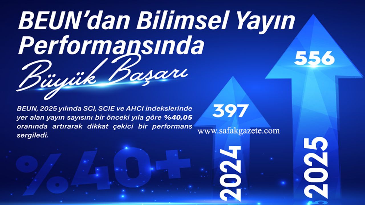 BEUN, 2025 yılında SCI, SCIE ve AHCI indekslerinde yer alan yayın sayısını bir önceki yıla göre %40,05 oranında artırarak dikkat çekici bir performans sergiledi.