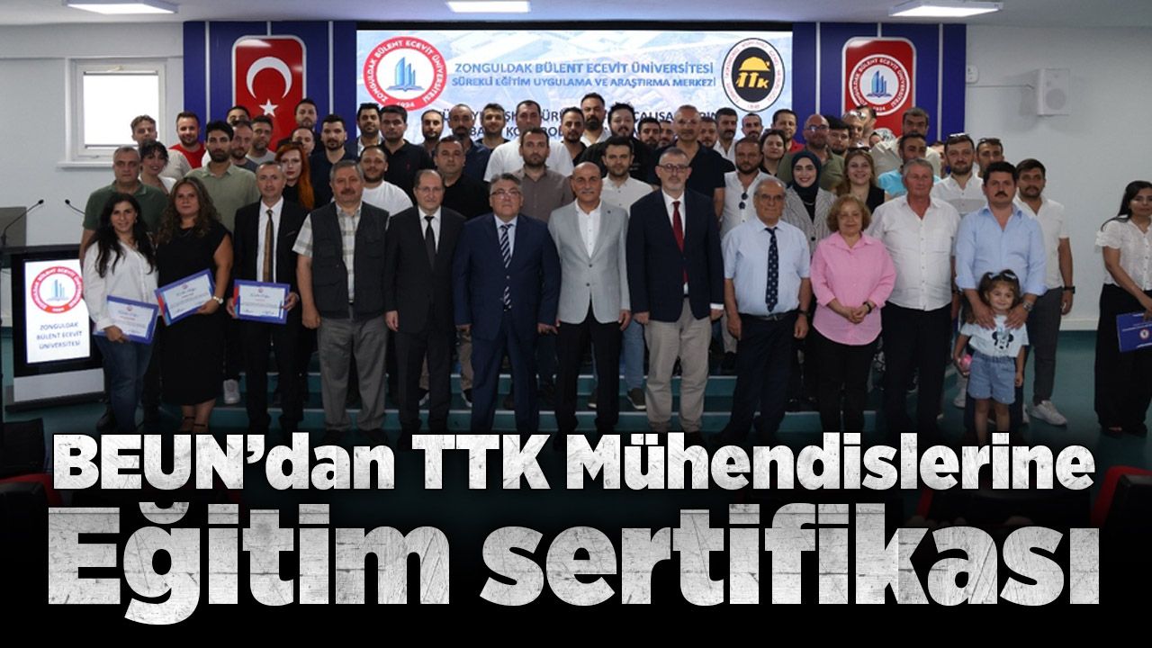 Zonguldak Bülent Ecevit Üniversitesi Sürekli Eğitim Merkezi tarafından düzenlenen ve 12 Haziran – 3 Temmuz tarihleri arasında gerçekleştirilen eğitim programı kapsamında, TTK mühendislerine üniversitenin Maden Mühendisliği Bölümü öğretim üyeleri tarafından "Tahkimat ve Tabaka Kontrolü, Yeraltı Açıklıklarının Tasarımı ve Galerilerde Tahkimat, Uzunayaklarda Tabaka Kontrolü ile Galerilerde Tahkimat Tasarımı Modellemesi için Sayısal Çözümler" başlıklı eğitimler verildi. Eğitimlerini başarıyla tamamlayan katılımcılara sertifikalarının takdim edilmesi amacıyla düzenlenen tören; aziz şehitlerin anısına saygı duruşu ve İstiklal Marşı’nın okunmasıyla başladı.