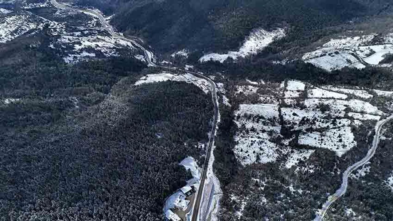 Kentte dün sabah saatlerinden itibaren yüksek kesimlerde başlayan kar yağışı, doğayı kısa sürede beyaza bürüdü. Karabük-Bartın kara yolunun 1030 rakımlı Ahmet Usta Geçidi mevkisinde yol boyunca uzanan ormanlar eşsiz manzaralar sundu.