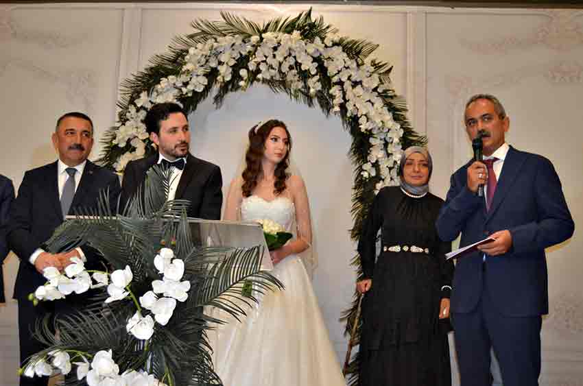 Gençlerin nikah töreninin ardından evlilik cüzdanı önceki dönem Milli Eğitim Bakanı ve Ordu Milletvekili Prof. Dr. Mahmut Özer tarafından gelin Beyza Ayabak’a takdim edildi.