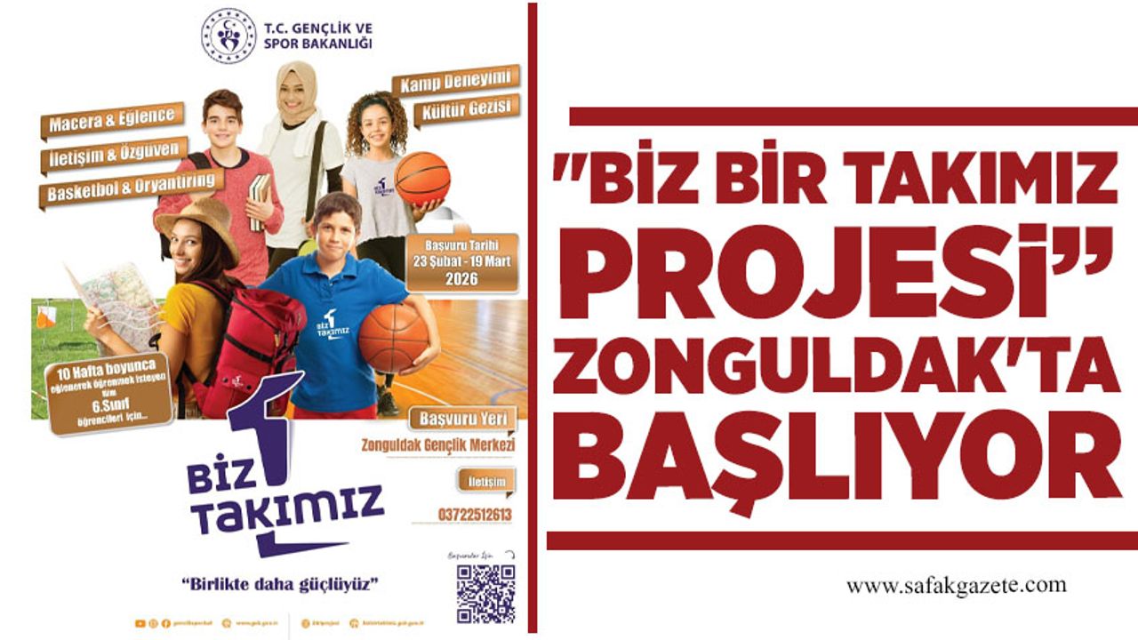 Projeye başvurular 23 Şubat - 19 Mart 2026 tarihleri arasında Zonguldak Gençlik ve Spor İl Müdürlüğü Zonguldak Gençlik Merkezi üzerinden alınacak. Gençlerin spor aracılığıyla bir araya gelerek dayanışma, empati ve birlikte hareket etme becerilerini geliştirmelerini hedefleyen Biz Bir Takımız Projesi, "Birlikte daha güçlüyüz" anlayışıyla gençlerin sosyal gelişimine önemli katkılar sunmaya devam ediyor.