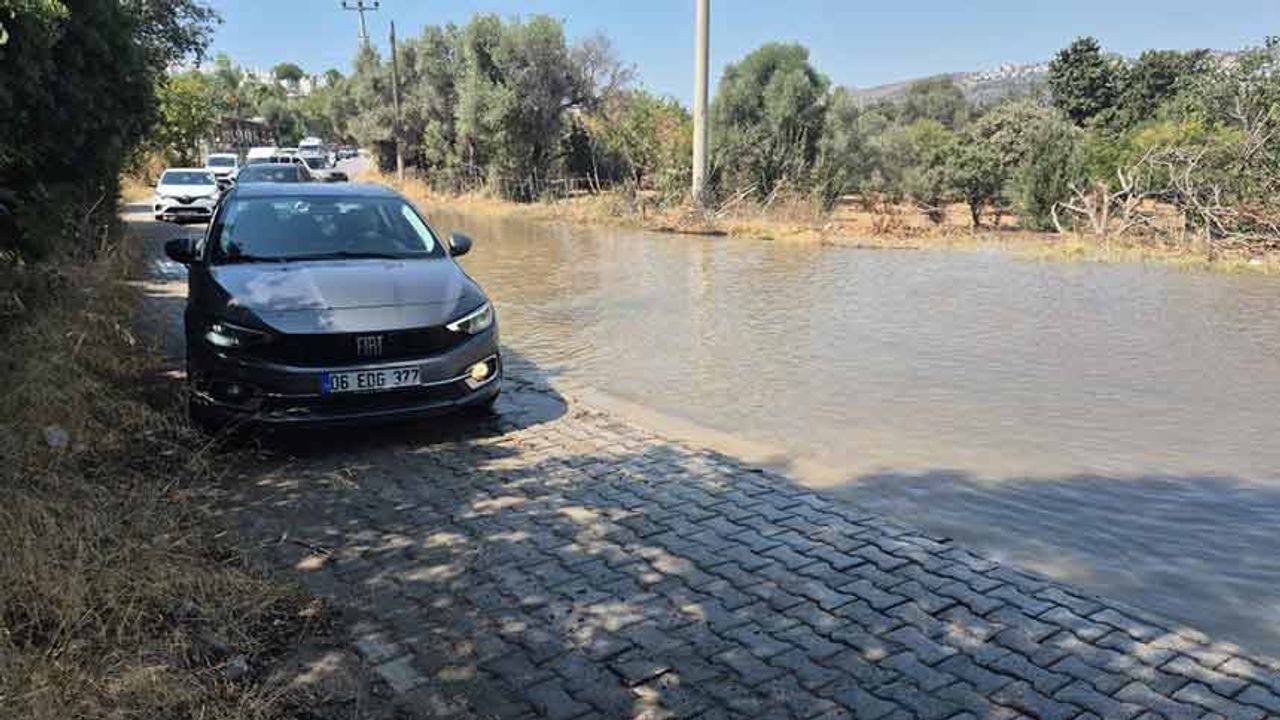 Patlama sonrası yolda büyük bir çukur oluştu. Patlaktan akan su, önce yola oradan da bahçelere aktı.
