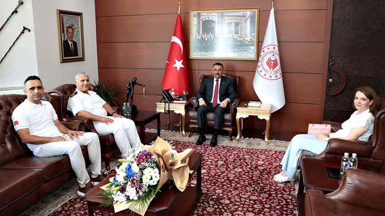 1 Temmuz Denizcilik ve Kabotaj Bayramı dolayısıyla Zonguldak Bölge Liman Başkanı Ahmet Mert, Başkan Yardımcısı Özkan Kutbe ve Gemi Sicil Müdürü Serpil Solak, Vali Osman Hacıbektaşoğlu’nu makamında ziyaret etti.