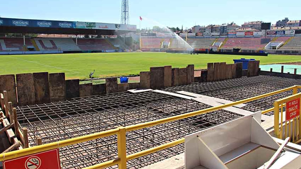 Yürütülen çalışmalar hakkında bilgi veren Müdür Bilgin, "Birinci prefabrik soyunma odaları, ortasında doping var, idari bölüm ikinci prefabrik, temsilci odası, toplantı salonu, basın odası hepsi orada bulunuyor. Maraton'un önünde geçici bir tribün yapılacak. 120 kişilik, 60 protokol, 60 gazetecilere. Seyirciyi tamamen kale arkasına alıyoruz. Misafir seyirci 140'a düşüyor, tampon daralacak. Bize 2 bin 700 gibi rakam kalıyor. Büyük temel pilot kameraların bölgesi. En üste pilot kameralar konacak. İkinci bölümde izleme, en altta bilgi işlem merkezi. Baştakiler gol çizgisi ve ofsayt kamerası olacak. Kapalı önündeki çalışmalar da bunlar" diye konuştu.