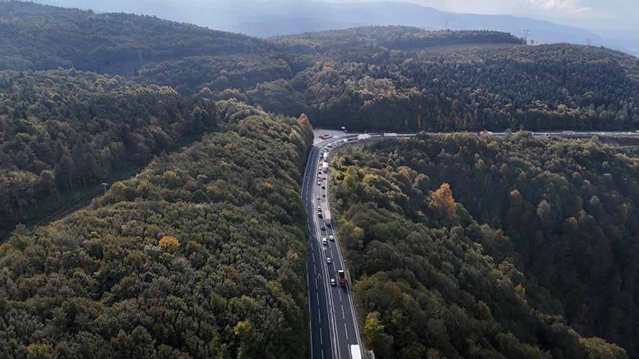 TEM Otoyolu Bolu Dağı Tüneli’nde devam eden bakım ve onarım çalışmaları nedeniyle, 31 Ekim’e kadar hafta içi her gün 10.00-15.00 saatleri arasında İstanbul yönü geçici olarak trafiğe kapatılıyor. Bu durum, sürücüleri D-100 kara yoluna yönlendirdi ve özellikle Abant Kavşağı ile Bolu Dağı rampalarında yoğun araç trafiği oluştu. Trafikteki bu yoğunluk havadan görüntülendi.