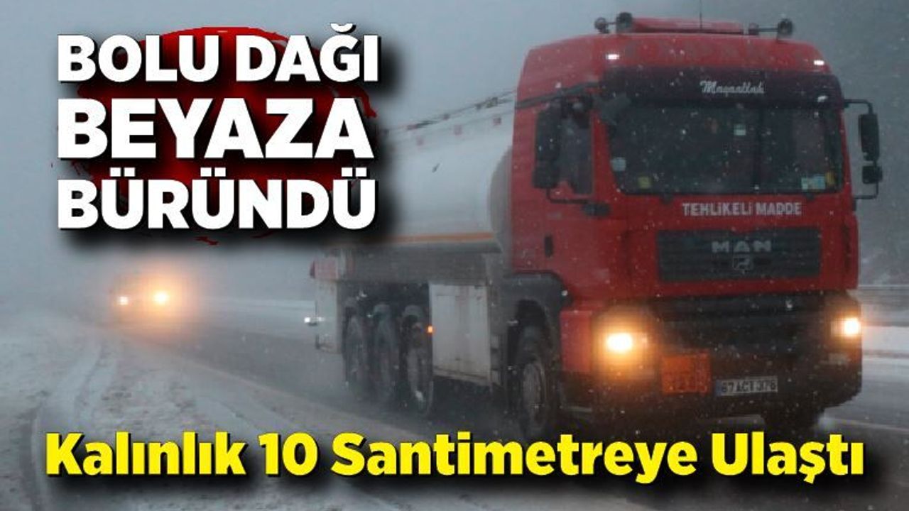Türkiye’nin en önemli geçiş güzergahlarından D-100 karayolu Bolu Dağı kesiminde kar yağışı etkili oldu, kar kalınlığı 10 santimetreye ulaştı.