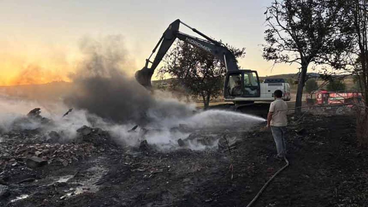 Yangının anızda başladığını söyleyen köy muhtarı Adem Kanbur ise, "Tarladan çıkmış, anız yanarak rüzgarın etkisiyle evlere sıçramış. İki ev, bir konteyner ev, iki samanlık ve iki ahır yandı. Allah devletimize zeval vermesin. Ekipler şu an yangını kontrol altına aldı" ifadelerini kullandı.