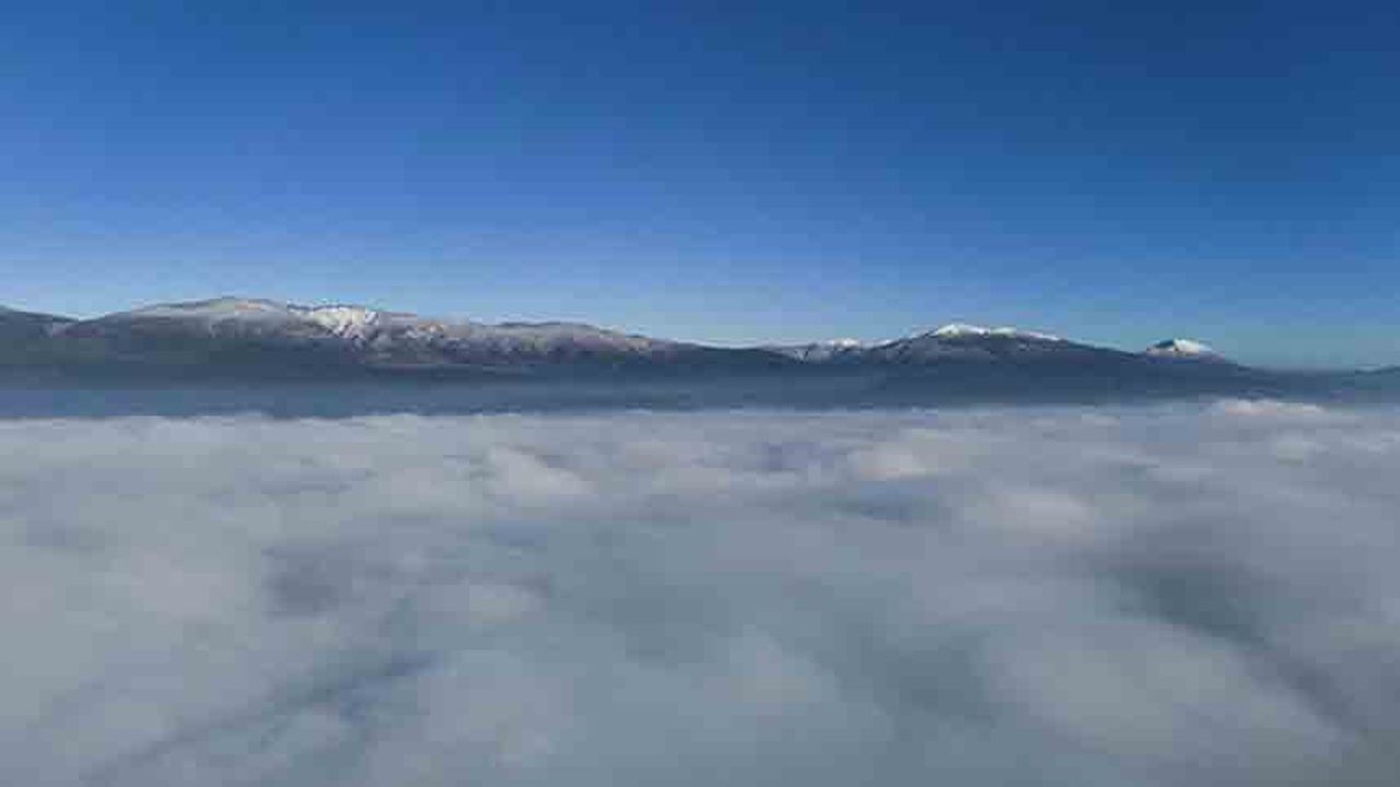 Bolu'da sabah saatlerinden itibaren şehrin üzerine çöken sis tabakası havadan görüntülendi. Karlı dağlar ve sis tabakası güzel görüntüler ortaya çıkardı.