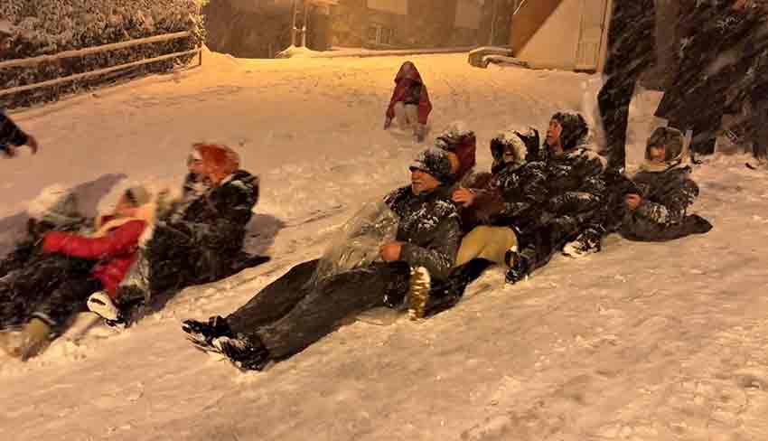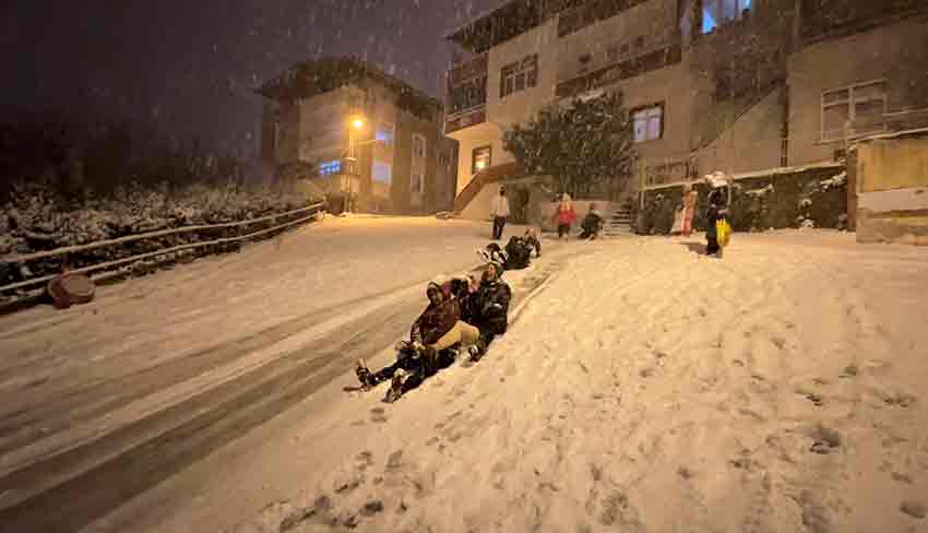 Samsun'da akşam saatlerinde aniden bastıran kar yağışı, kısa sürede kenti beyaza bürüdü. Karın tadını çıkarmak isteyen vatandaşlar ise evlerinden getirdikleri poşetler ve leğenlerle sokakları kayak pistine çevirdi. Kar yağışı sonrası sokaklarda kayan vatandaşlar eğlenceli anlar yaşadı.