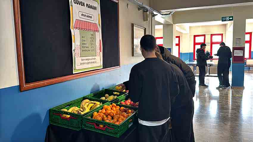 Öğrencilerden Eray Altay, öğrencilerin uygun fiyatlı meyve ihtiyaçlarını manavdan karşıladığını aktararak, uygulama ile birbirine güvenen bir toplum inşa edilmesini hedeflediklerini kaydetti.