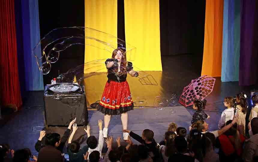 Zonguldak Belediye Sinemasında dün öğleden sonra çocuklar için gösterilen Bubble Show, suyun, havanın ve rengin birleştiği büyülü bir sahne yolculuğu. Her anında izleyenleri hayal gücünün sınırlarının ötesine taşıyan bu gösteride, devasa baloncuklar ışıkla şekil değiştirdi, sisin içinde renkler canlandı, lazerler ve müzik bir rüyayı andıran atmosfer yarattı.