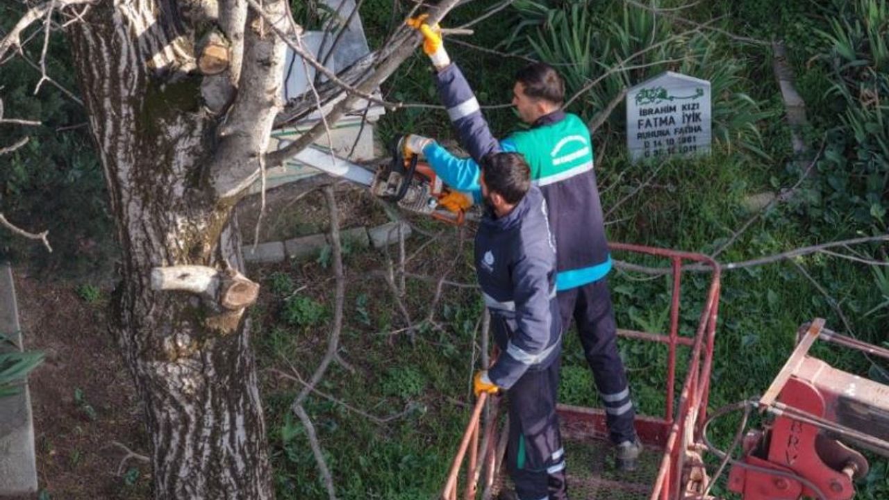 Başiskele Belediyesi Park ve Bahçeler Müdürlüğü ekipleri, ilçe genelindeki cadde, sokak, park, bahçe ve mezarlıklardaki ağaçları kış mevsimine hazırlıyor. Sepetli araçlar yardımıyla yürütülen çalışmalarda, ağaçların gelişimini güçlendirmek ve rüzgarlı havalarda vatandaşlar için tehlike oluşturabilecek durumların önüne geçmek amacıyla kuruyan dallar budanıyor.
