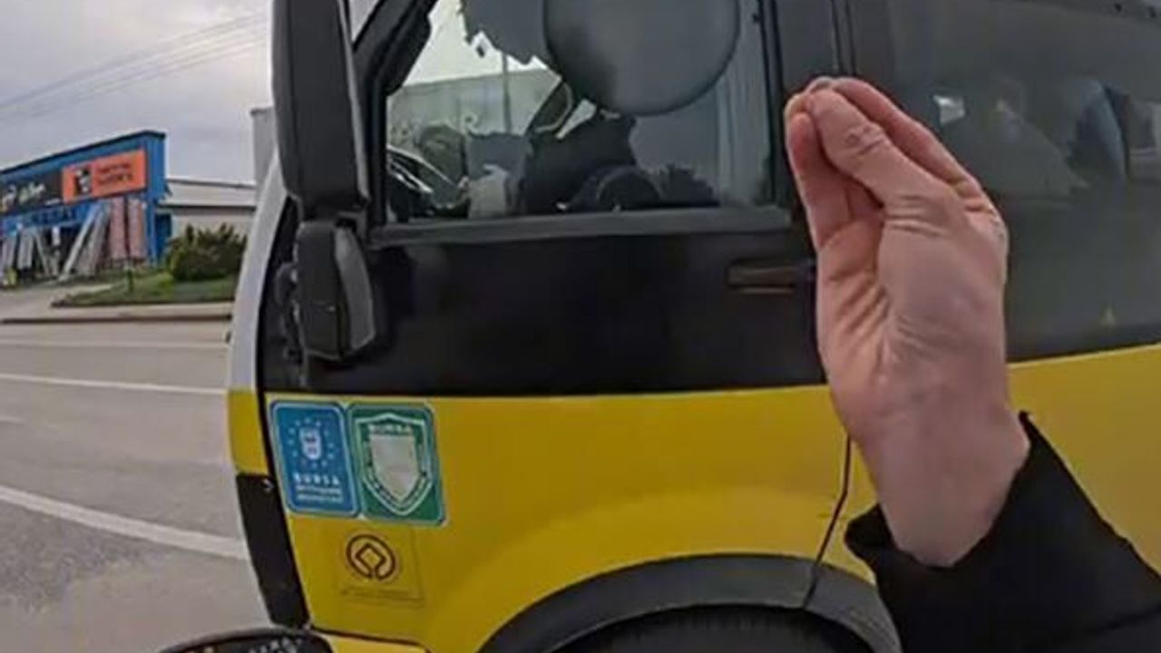 Olay, Bursa’nın Nilüfer ilçesine bağlı Üçevler Mahallesi Nilüfer Caddesi üzerinde meydana geldi. Kendi şeridinde ilerleyen motosiklet sürücüsünün önüne bir anda otobüs kırdı. Ani refleksle sol şeride geçerek kazadan son anda kurtulan motosikletli, otobüs şoförüne tepki gösterdi.