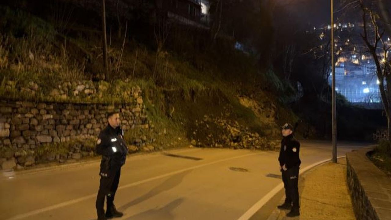 Toprak kaymasının meydana geldiği Çağlayan virajında seyir halinde olan bir ticari taksi sürücüsü aracını son anda durdurmayı başararak olası bir kazayı önledi.