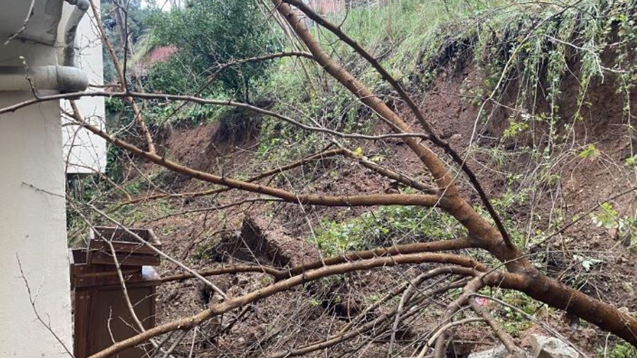 Bursa’nın Osmangazi ilçesinde günlerdir etkili olan yağışlar nedeniyle bir binanın yanında bulunan istinat duvarı çöktü. Duvarın yıkılmasıyla birlikte bahçedeki bazı ağaçlar kökünden sökülerek binaya doğru devrildi.
