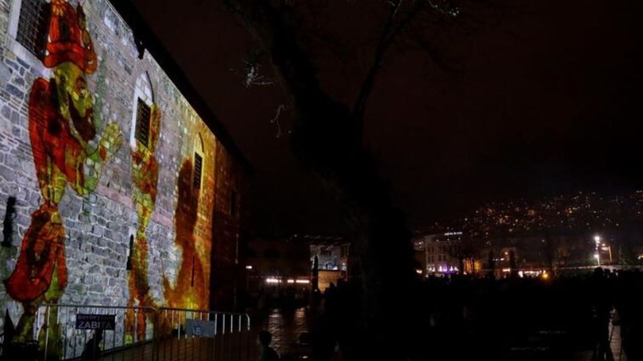 Bursa'nın kalbi konumundaki Tarihi Çarşı ve Hanlar Bölgesi'ndeki Pirinç Han duvarlarını ve Tophane surlarına adeta tuvale dönüştüren Büyükşehir Belediyesi, dijital mapping teknolojisiyle izleyenleri destansı bir yolculuğa çıkardı. ‘Bursa'nın Işıklı Destanı' temalı etkinlikte, ışık gösteriyle Orhan Gazi'nin Bursa'yı fethi ve kentin kuruluşundan sonraki tarihi süreçler büyülü bir atmosferde anlatıldı.