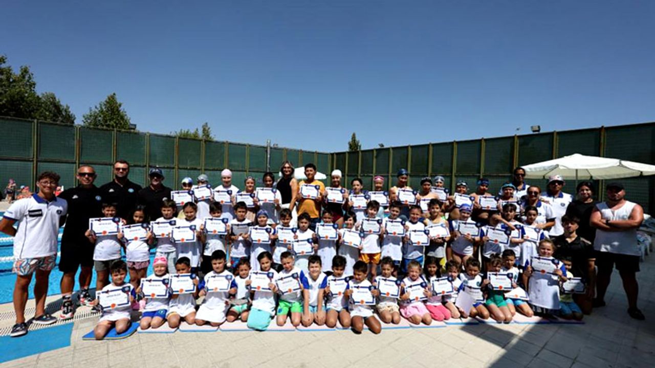 Bursa Büyükşehir Belediyesi Gençlik ve Spor Hizmetleri Dairesi Başkanlığı koordinasyonunda Büyükşehir Belediyespor iş birliğiyle 12 farklı branşta gerçekleştirilen Yaz Spor Okulları’nda eğitimler tüm hızıyla devam ediyor. Fethiye, Mihraplı, Kestel ve Gürsu Yüzme Havuzları’ndaki kurslara katılan 6-13 yaş aralığındaki çocuklar, 2 hafta boyunca haftanın 4 günü eğitim aldı. Bursa Büyükşehir Belediyesi’nin modern tesislerinde deneyimli antrenörler eşliğinde spor yapma imkanı bulan çocuklar, hem tatilin hem de havuzun tadını çıkardı. Eğlence dolu geçen ilk dönem sonunda minik yüzücüler, sertifika almanın mutluluğunu yaşadı.