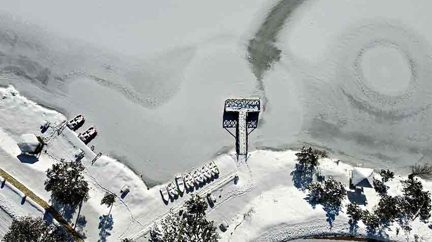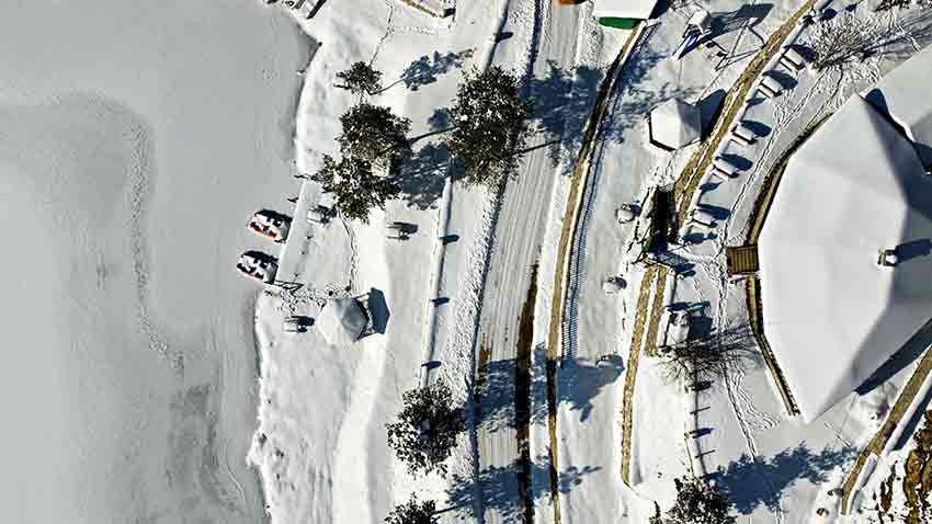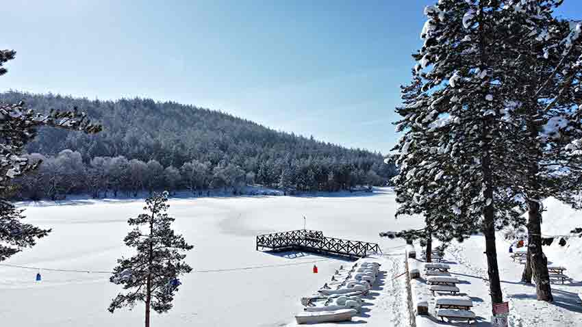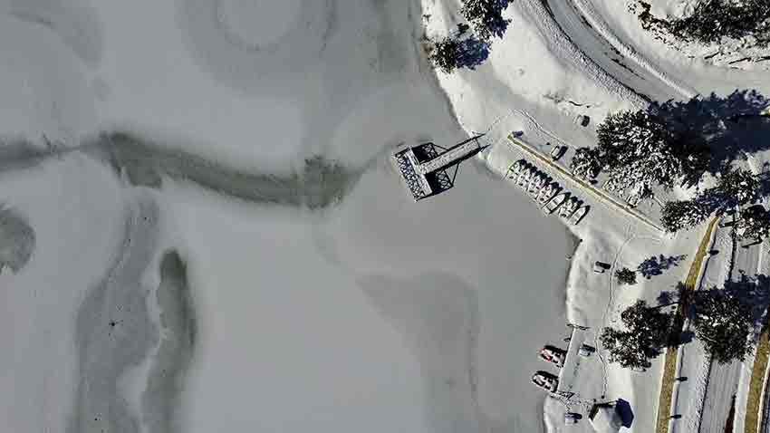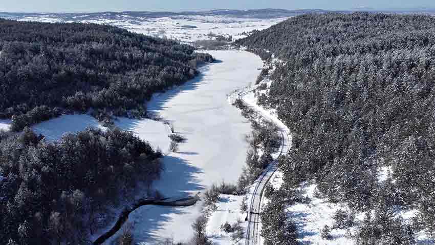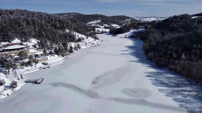 Eflani ilçesi kar yağışının artından beyaz örtüyle kaplandı. Hava sıcaklıklarının sıfırın altında eksi 21 dereceyi gördüğü ilçedeki Bostancılar, Kadıköy ve Ortakçılar göletlerinin yüzeyleri dondu. Buzla kaplanan ve kartpostallık görüntüler ortaya çıkaran göller dron ile görüntülendi.