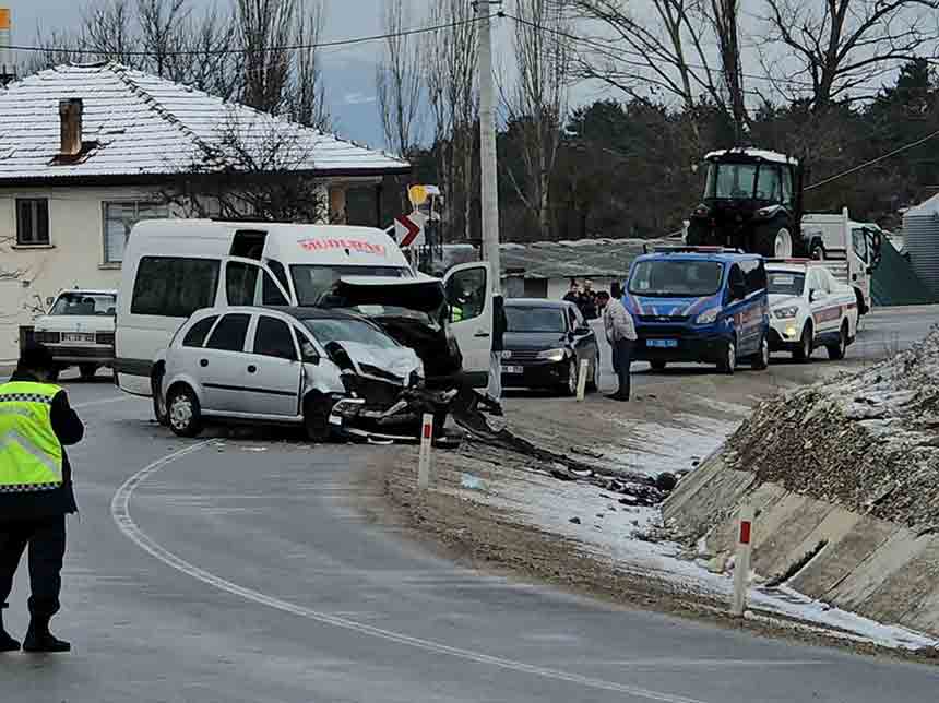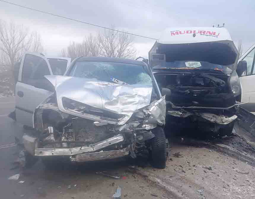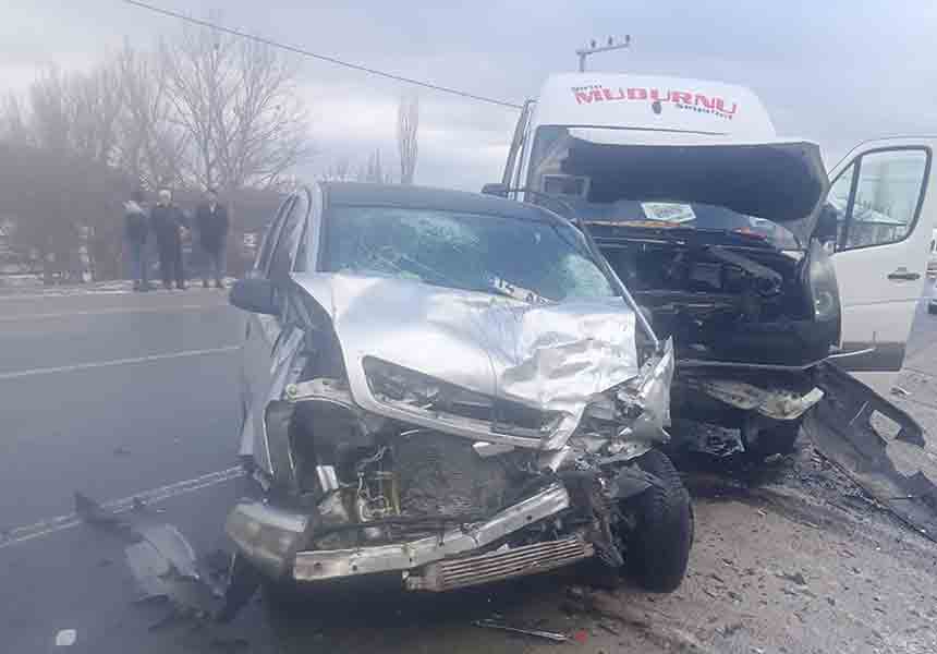 MİNİBÜS TERS DÖNEN OTOMOBİLE ÇARPTI