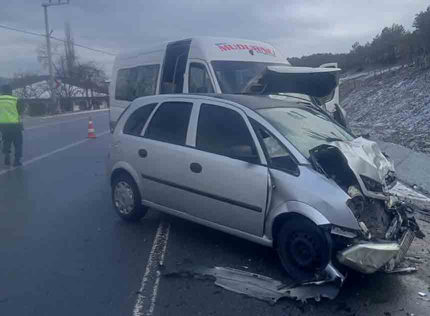 Aynı istikamette seyir halinde olan ve Bolu-Mudurnu arasında yolcu taşımacılığı yapan 14 ABF 226 plakalı minibüs, yolda ters dönen otomobile çarptı. Çarpışmanın etkisiyle kazada 10 kişi yaralandı.