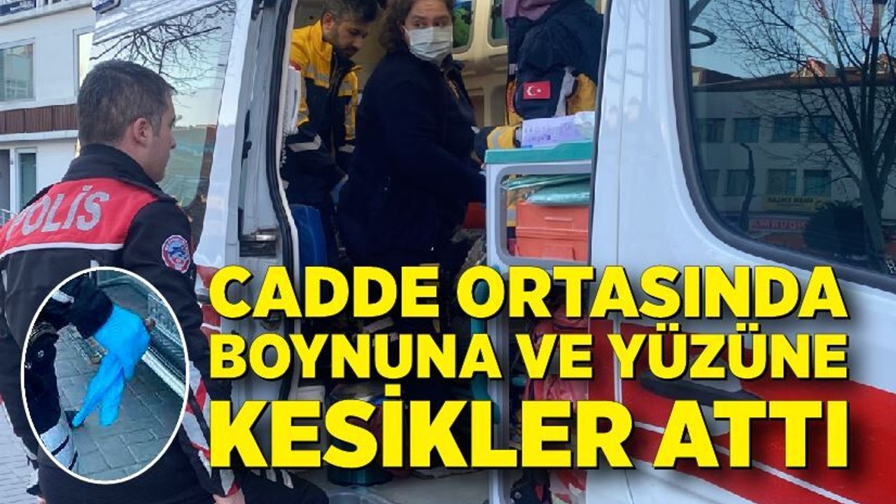 Olay, İzzet Baysal Caddesi'nde meydana geldi. Alkollü olduğu ileri sürülen Fahrim K., yanında bulunan ekmek bıçağıyla önce yüzüne, ardından da boynuna kesikler atmaya başladı.