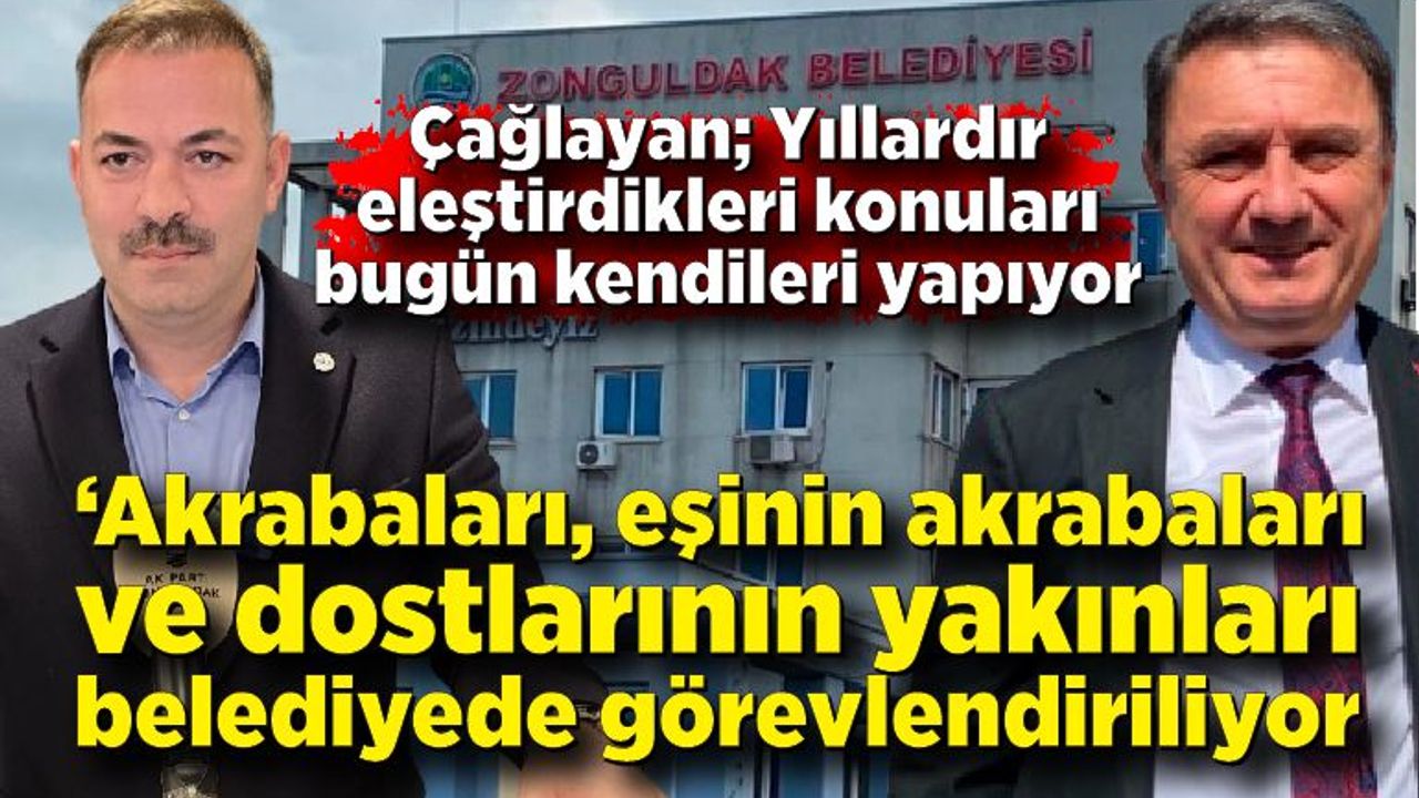 AK Parti Zonguldak İl Başkanı Mustafa Çağlayan, belediyede “çok ciddi sayıda işçi alımı” yapıldığını belirterek, yıllardır eleştirilen yöntemlerin bugün yeniden uygulandığını ifade ederek şu ifadeleri kullandı: “Gerçekte yıllardır eleştirdikleri konuları bugün kendileri yapıyor. Evet, akrabalar, eşinin akrabaları ve dostlarının yakınları belediyede görevlendiriliyor. Bunları kamuoyu da görecek. Tahminim, az önce verdiğim rakamlardaki ciddi artışların kaynağı işte buralarda kullanılıyor.