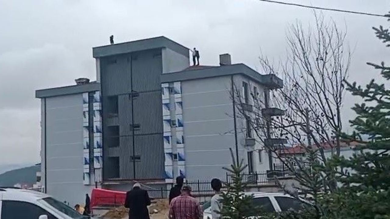 Bilecik merkez Beşiktaş Mahallesi Gülveren Sokak'ta Bilecik İl Özel İdaresi Plan, Proje, İnşaat ve Yatırım Müdürlüğü tarafından afete maruz kalan bölgelerde bulunan hak sahipleri için yapılan inşatta işçi olduğunu belirten bir şahıs, müteahhitten alacağı olduğunu iddia ederek çatıya çıktı. 5 katlı binanın çatısına çıkan şahsı gören diğer işçi arkadaşları durumu hemen 112'ye haber verdi. Olay yerine polis ve itfaiye ekipleri yönlendirildi. Ekipler apartmanın önüne şahsın atlaması ihtimaline karşı şişme yatak açtı.