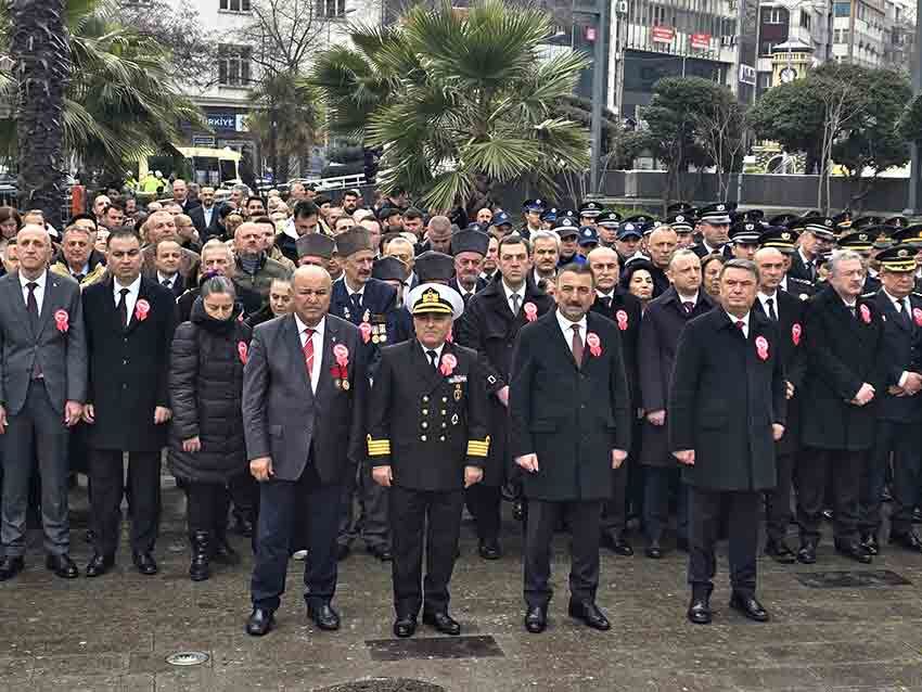 Tören, Valilik Garnizon komutanlığı, Şehit Aileleri Derneği ve Zonguldak Belediyesi tarafından anıta çelenk sunulmasıyla başladı. Ardından saygı duruşunda bulunuldu ve İstiklal Marşı okundu.