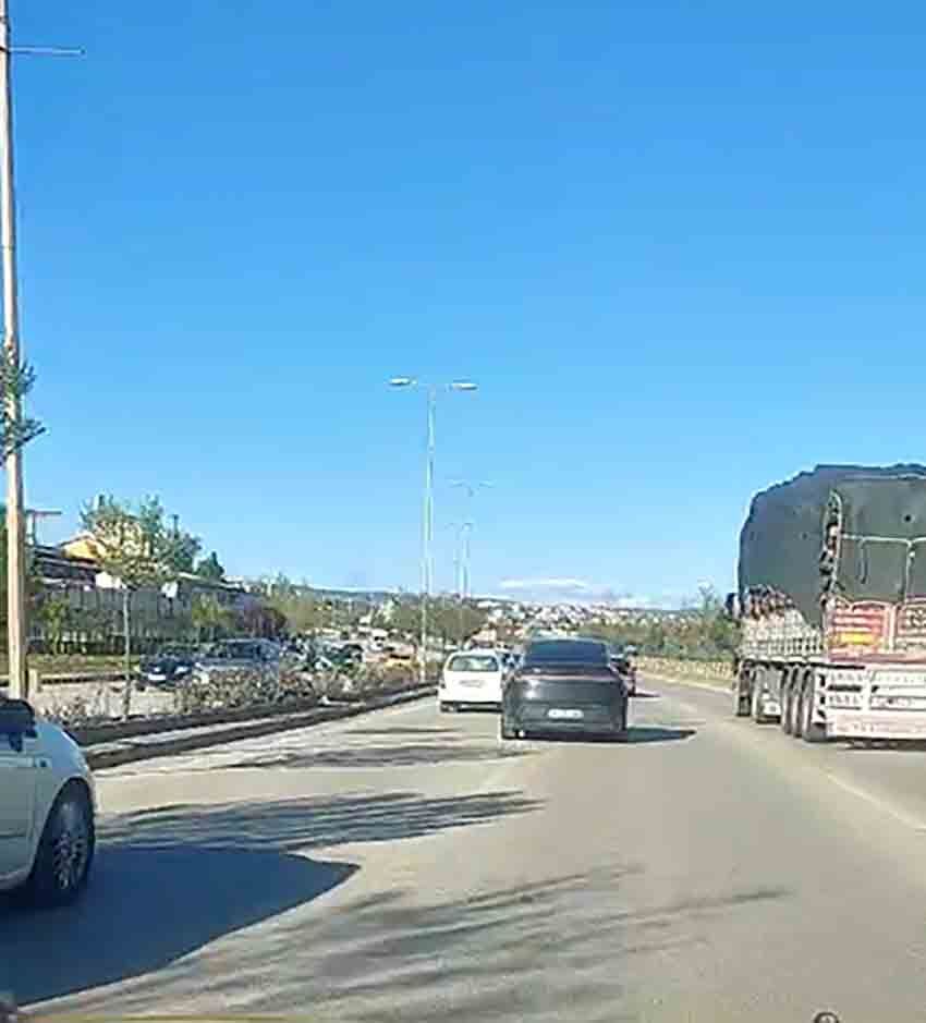 Hem kendi canını hem de diğer sürücülerin güvenliğini tehlikeye atan sürücünün tehlikeli hareketleri, başka bir sürücü tarafından cep telefonu kamerasıyla kaydedildi.