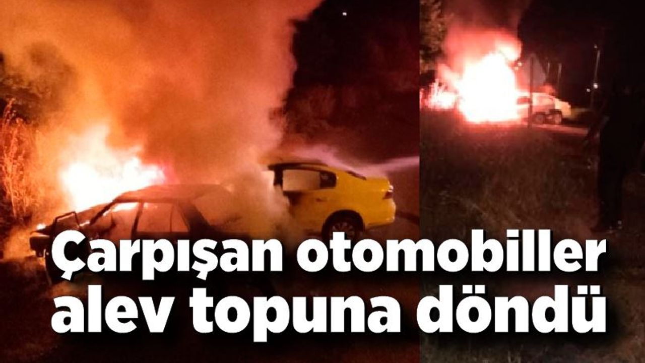 Nevşehir'de kafa kafaya çarpışan otomobiller alev aldı. Kazada 2 kişi yaralandı.