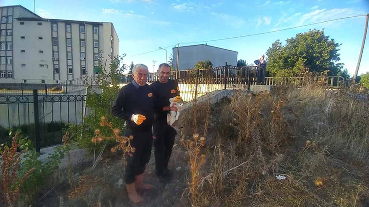 Daday İtfaiye Eri Mehmet Türkmen, "Kedi, dere yatağında sıkışmış halde mahsur kaldığını gördük. Bizde arkadaşımızla birlikte çaya merdiven ile inerek kediyi kurtardık ve sahibine teslim ettik. Sahibi bizlere teşekkür etti, bizde sevindik" dedi.