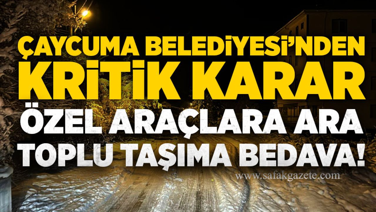 Çaycuma Belediyesi, etkisini artırarak sürdüren yoğun kar yağışı, kuvvetli buzlanma ve don olayları nedeniyle özel araçların trafiğe çıkmasının can ve mal güvenliği açısından ciddi risk taşıdığını açıkladı.