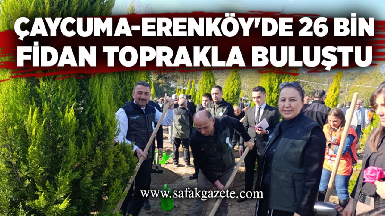 Zonguldak'ın Çaycuma ilçesi Erenköy'de 11 Kasım Milli Ağaçlandırma Günü kapsamında yeşil vatan Seferberliği ile "Geleceğe Nefes Olalım, Bir Fidan da Biz Dikelim! " etkinliği gerçekleştirildi. 11 Kasım Milli Ağaçlandırma Günü'nde 26 bin fidan toprakla buluştu.
