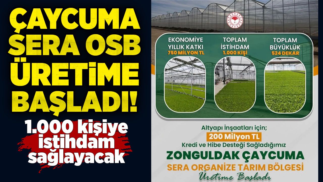 Toplam 524 dekar alana kurulan Çaycuma Sera OSB’de, 15 sera ve 3 sanayi parseli yer alıyor. Altyapı çalışmaları 200 milyon TL destekle tamamlanan proje, 1.000 kişiye istihdam sağlayacak. Üretim kapasitesiyle dikkat çeken tesisin Zonguldak ekonomisine yıllık 750 milyon TL katkı sunması bekleniyor.