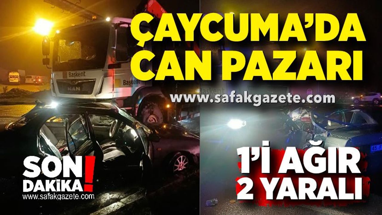 Çaycuma ilçesinde meydana gelen trafik kazasında, bir elektrik kurumuna ait tır, kavşakta otomobile çarptı. Kazada 1’i ağır olmak üzere 2 kişi yaralandı.