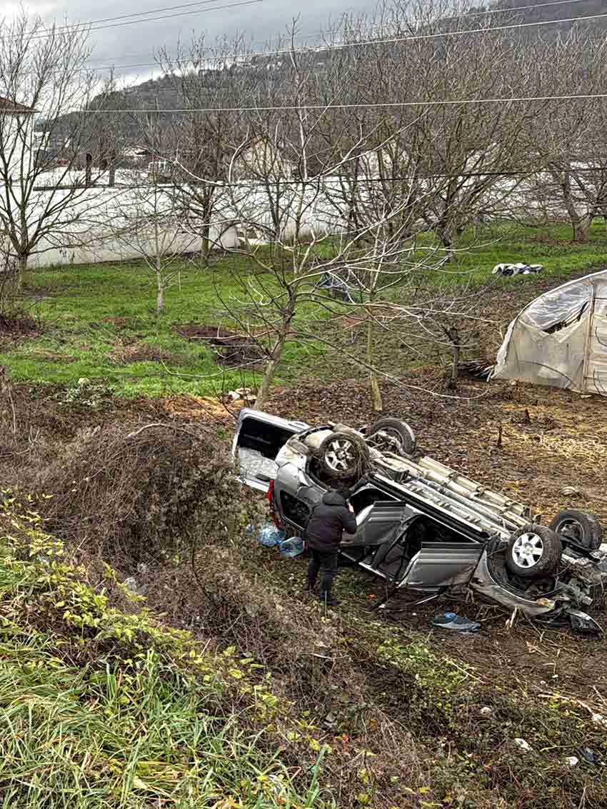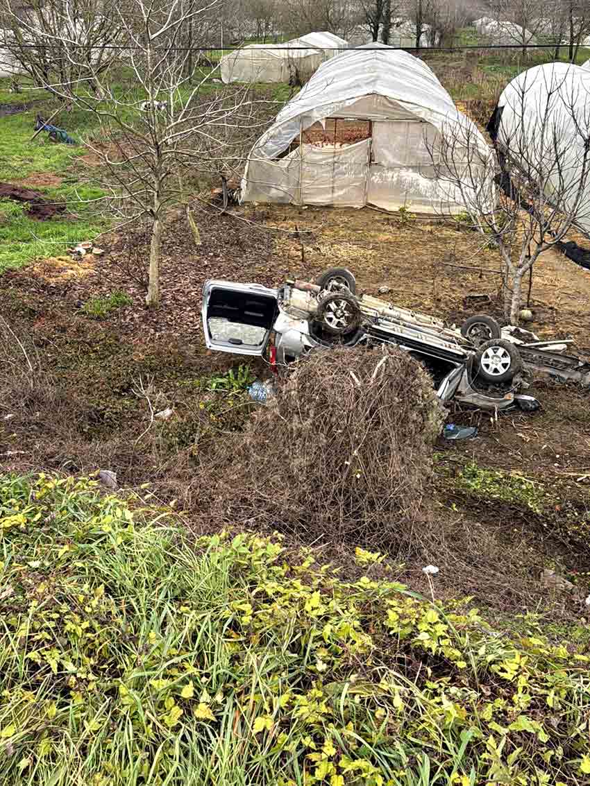 Kontrolden çıkan araç, yoldan çıkarak yaklaşık 7 metrelik uçurumdan bahçeye yuvarlandı.