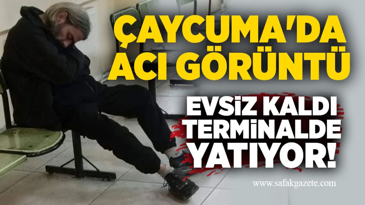 Çaycuma İstasyon Mahallesi Terminal Tesisleri’nde her gece sandalyenin üzerinde uyuyan Serdar E., çevrede merak konusu oldu. Perşembe Beldesi’nden olduğu öğrenilen Serdar E., geceleri terminalde kalıyor.