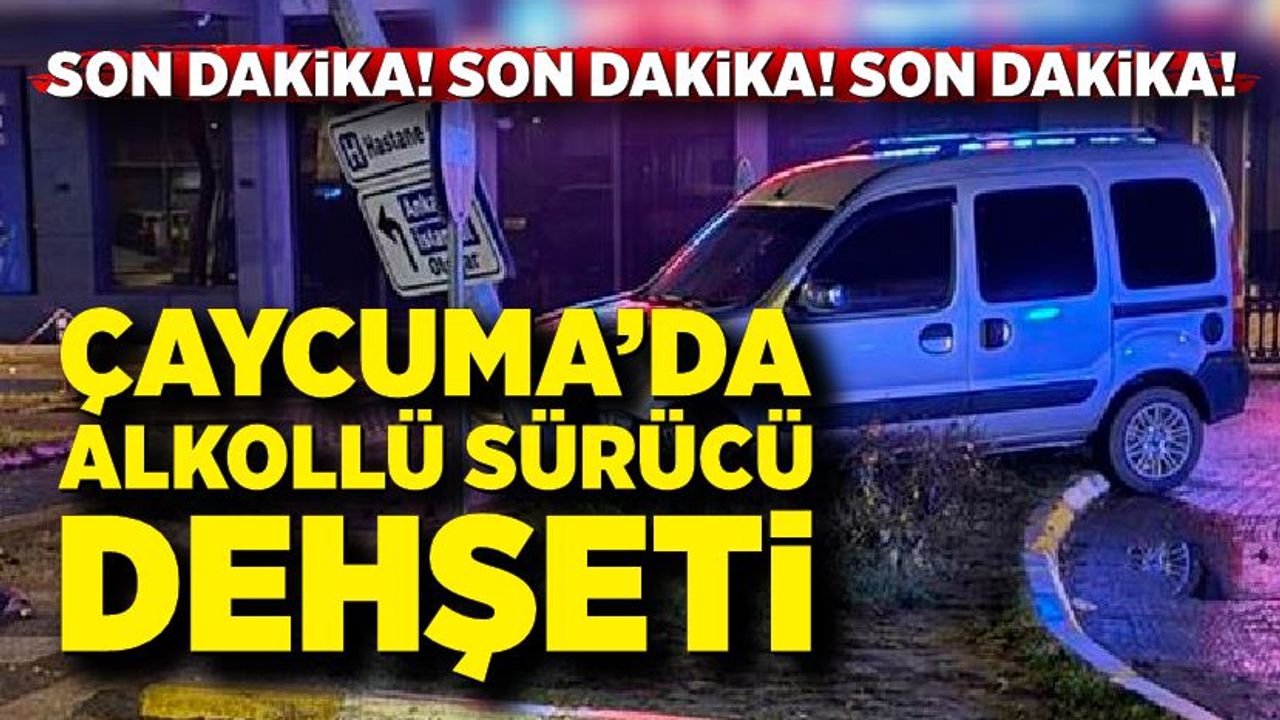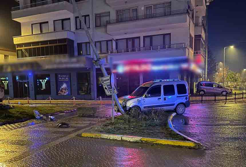 Çaycuma’da alkollü sürücü dehşeti: Refüje çıktı, direğe çarptı