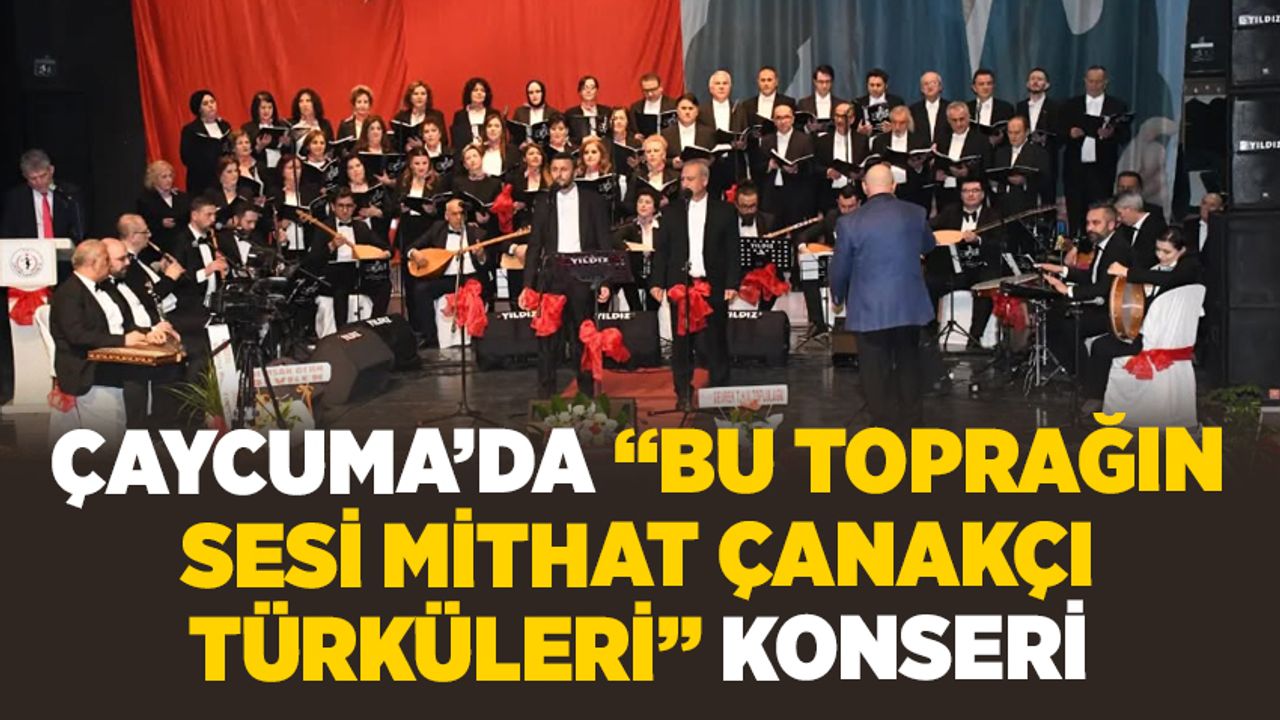Çaycuma Türk Halk Müziği Topluluğu, “Bu Toprağın Sesi Mithat Çanakçı Türküleri” konserini Çaycuma Kültür Merkezi’nde izleyicilerle buluşturdu. Konser, topluluğun şefi Ertuğrul Karabulut yönetiminde gerçekleşirken sunuculuğu Birhan Keser üstlendi.