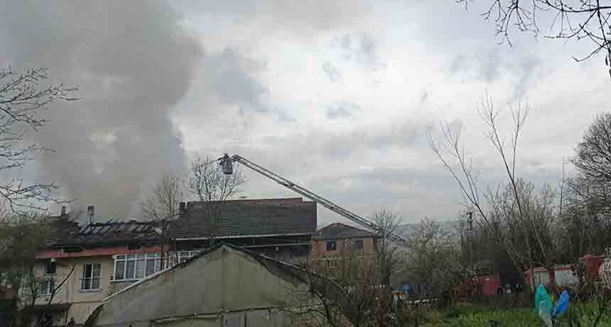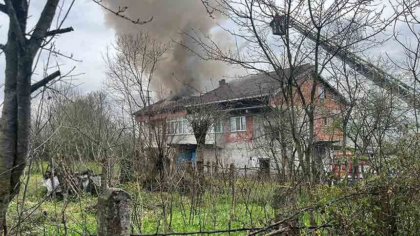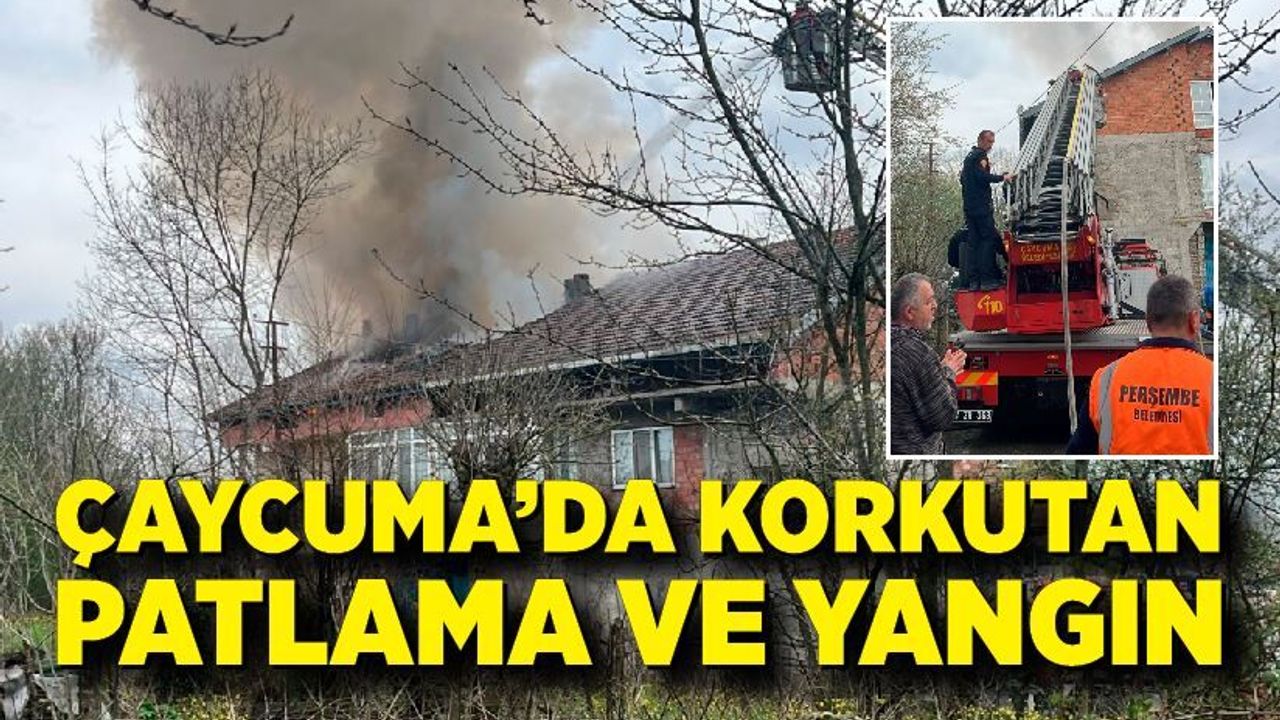 Zonguldak'ın Çaycuma ilçesine bağlı Perşembe beldesi Keçecioğlu Mahallesinde iki katlı evde doğalgaz kaynaklı olduğu iddia edilen yangın sonucu evin çatı katı alevlere teslim oldu. Yangın sırasında yaşanan patlama anı ise saniye saniye amatör kameraya yansıdı.